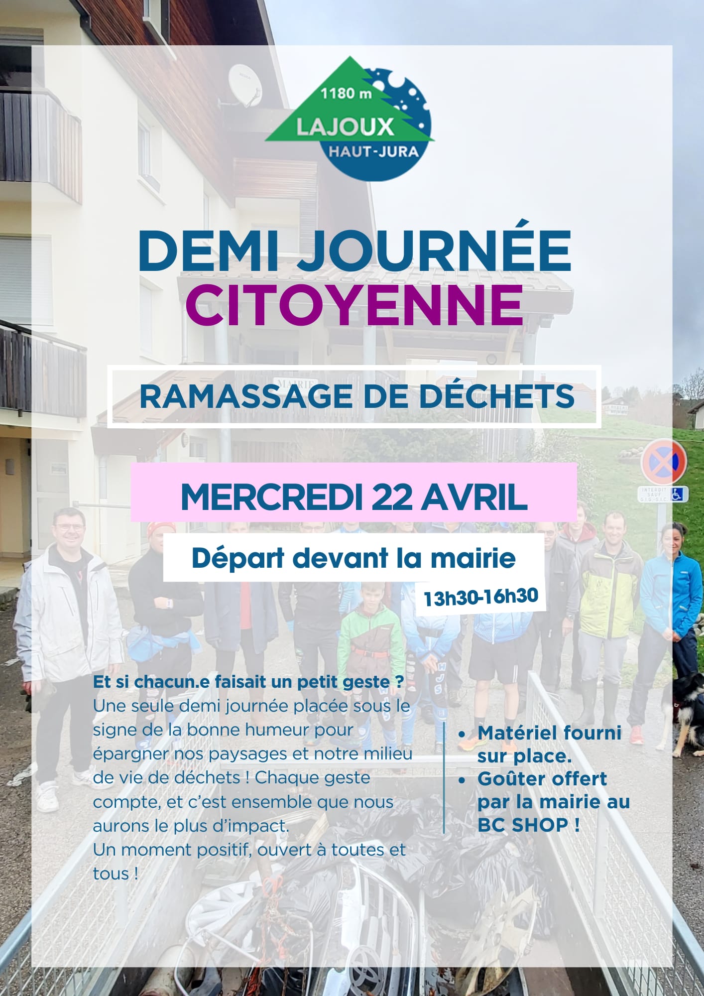 Comme chaque année, la commune vous invite à participer à la demi-journée de ramassage des déchets. Un moment certes pas des plus réjouissants, mais utile, à partager avec une équipe pleine d’énergie et de bonne humeur.